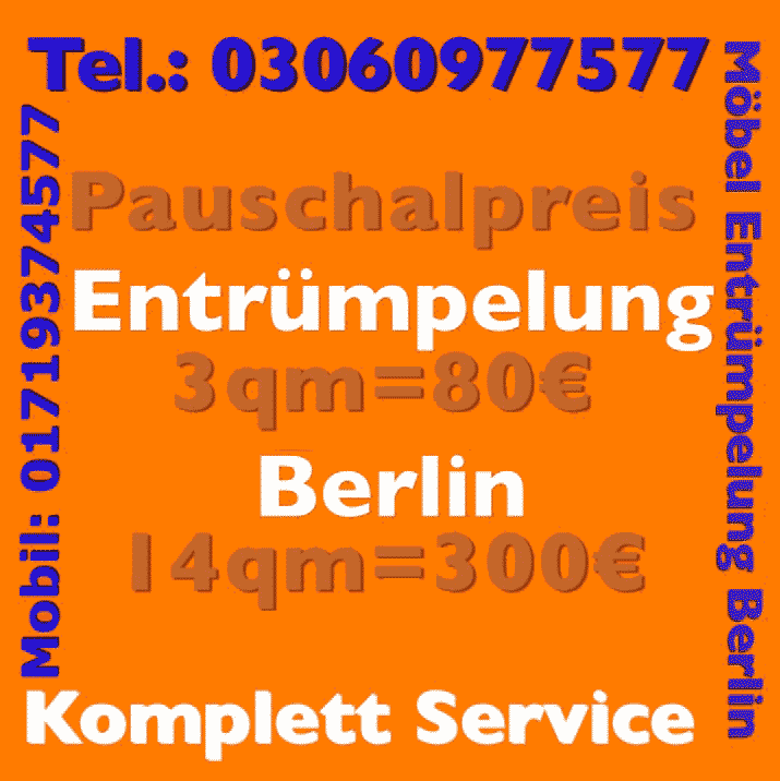 Ebenso wird eine BSR Abholung in schnell einmal notwendig. Mit uns als Partner lässt sie dies auch ohne langfristige Planung schnell komfortabel realisieren. Mit unseren Wohnungsauflösung Angeboten Entrümpelungsdienst Sperrmüllabholung, Möbel Abholung und auf Video Abholung und Bilder von Abholung Sperrmüll, erhalten Sie Ihre Emtrümpelung fachmännisch zum vereinbarten Preis. Wohnung Abholung in oder Möbel Abholung in werden jeweils im Rahmen unseres Abtransport-Sofortdienstes mit einem modernen Sprinter Fahrzeug durchgeführt und damit zu einem komfortablen Vorhaben zum exklusiven Hammerpreis. Bei uns stimmen Angebot, Preis, Leistung, Service. Überzeugen Sie sich und rufen Sie uns an. Unser professionelle Wohnungsentrümpelung Service ist jederzeit erreichbar und steht zu Ihrem Wunschtermin für alle Arbeiten rund um Abholung inkl. Abholung in zur Verfügung.